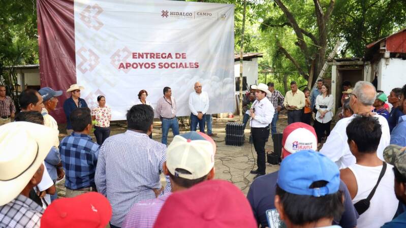 9 de agosto 2024. En gira de trabajo, el titular de la Secretaría de Agricultura y Desarrollo Rural, Napoleón González, visitó los municipios Yahualica, Tlanchinol y Huejutla, en donde realizo la entrega de diferentes apoyos en beneficio de la gente trabajadora del campo,